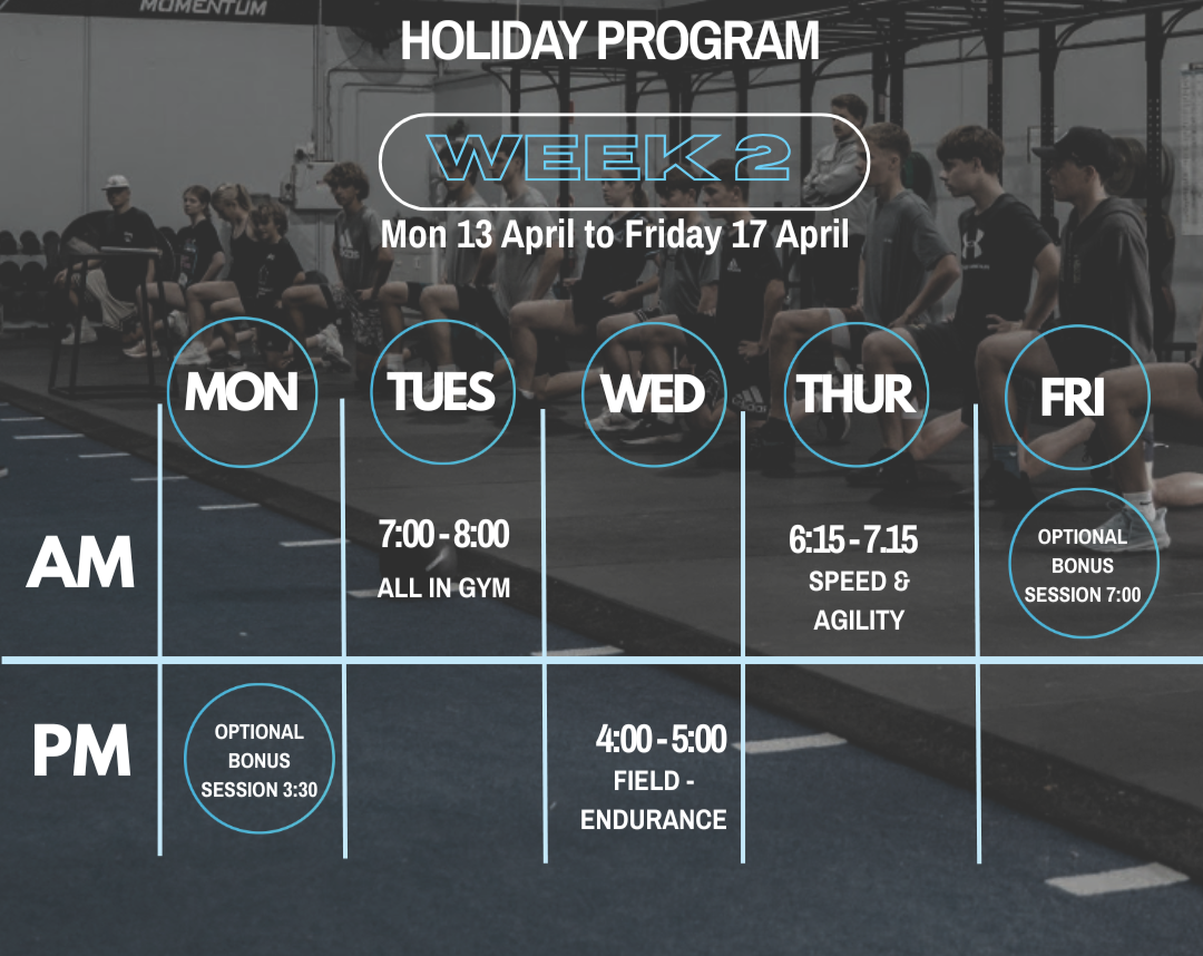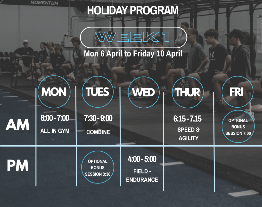 A taste of the Momentum Athletic Development (MAD) Program – MAD is Momentum’s structured athlete development program designed for athletes aged 12–20 who want to improve strength, speed, power and resilience for sport.